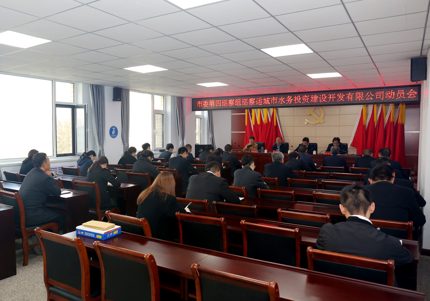 11月5日上午,市委第四巡察組進駐我公司召開動員大會,市委巡察辦副主任邵建設,市委巡察第四組組長薛永旭、副組長白雪梅,市委巡察辦巡察三科科長田玉軒及巡察組全體成員,駐市工信局紀檢監(jiān)察組正科級紀檢監(jiān)察員馮偉一行7人到會指導。公司黨委班子成員,全體員工和三個下屬單位主要負責同志,共計28人參加會議。會議由公司黨委書記崔作銘同志主持。