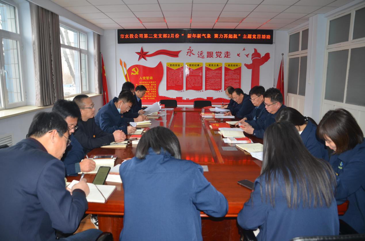 按照市水投公司黨委統(tǒng)一部署要求,第二黨支部2022年2月7日下午組織全體黨員、積極分子、群眾代表開(kāi)展了“新年新氣象,聚力再起航”主題黨日活動(dòng),會(huì)議由支部書(shū)記吳爭(zhēng)兵主持。