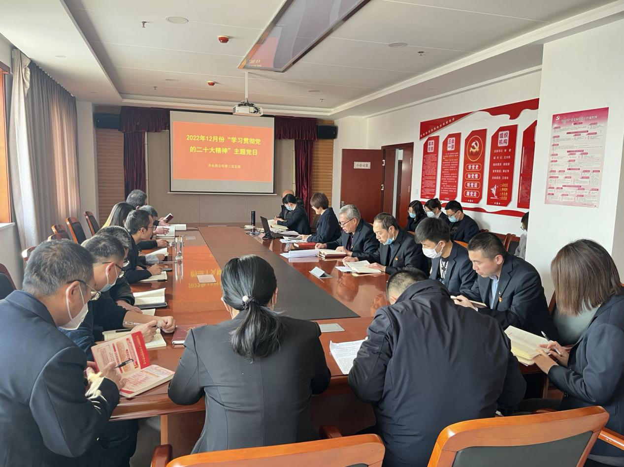 按照市委組織部《關(guān)于認真開展2022年12月黨支部主題黨日活動的通知》要求,結(jié)合公司黨委安排部署,12月5日下午,支部組織黨員、各科室負責(zé)人和群眾代表開展了“學(xué)習(xí)貫徹黨的二十大精神”主題黨日活動。