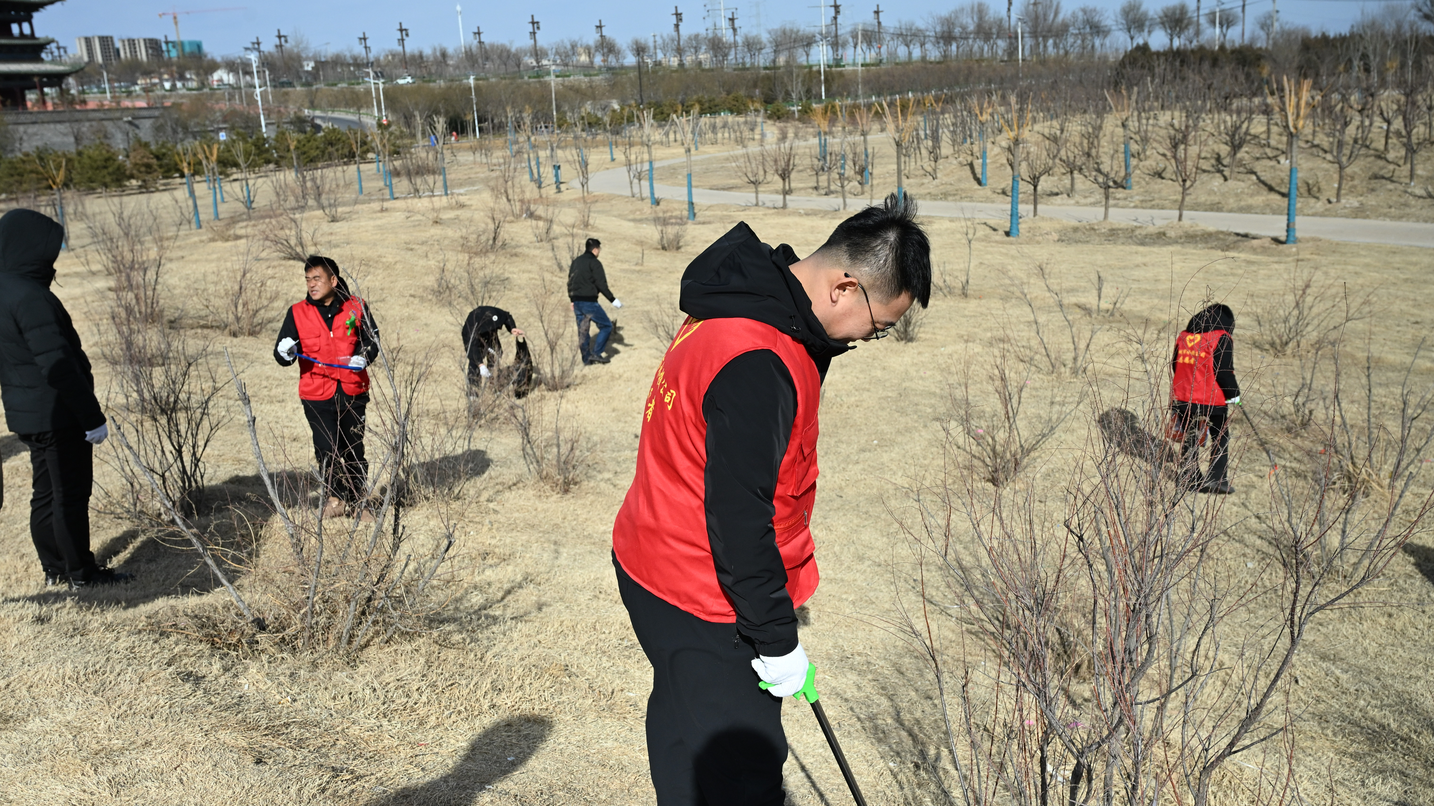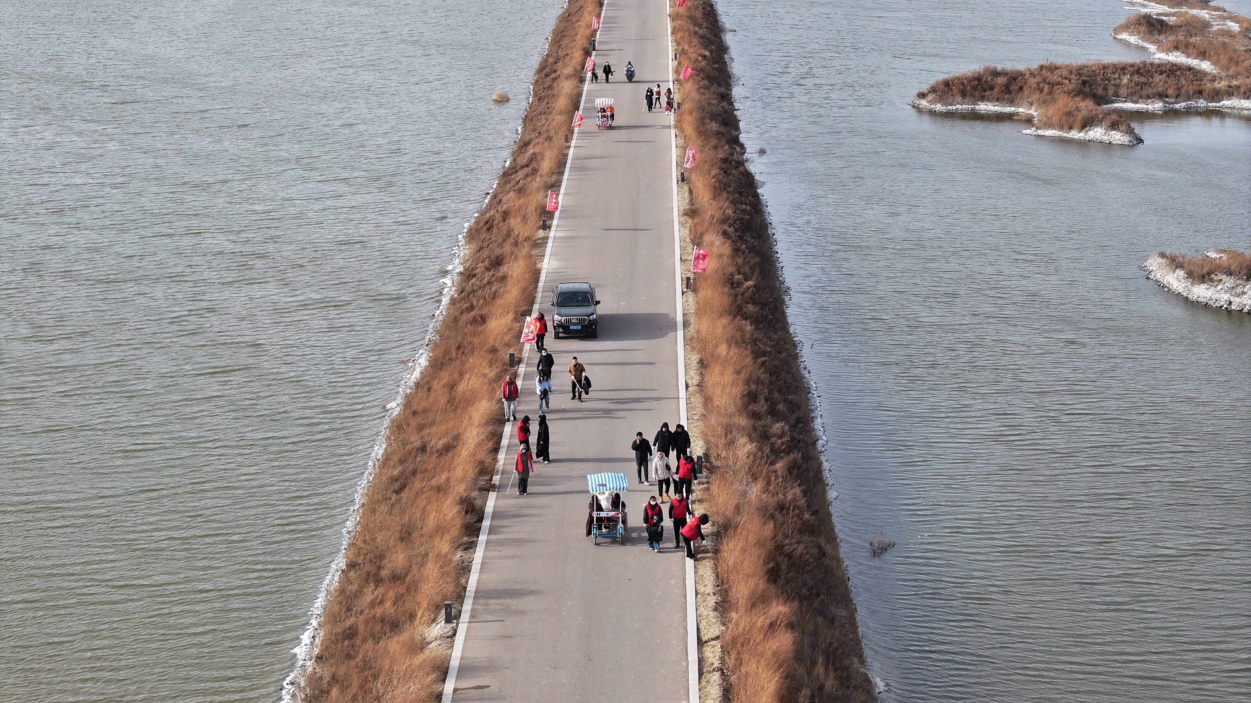 活動(dòng)中,黨員同志們身穿紅馬甲,分工明確、密切配合,按照事先劃分區(qū)域開展行動(dòng)。大家手持垃圾鉗、垃圾袋等工具,圍繞鹽湖22號(hào)堤埝、濕地公園、11-1號(hào)路等范圍,深入堤埝兩側(cè)、蘆葦叢等對(duì)煙頭、塑料瓶、泡沫、果皮紙屑等垃圾進(jìn)行撿拾清理,共清理清運(yùn)垃圾60余袋,在大家齊心協(xié)力下鹽湖周邊衛(wèi)生環(huán)境得到明顯改善。