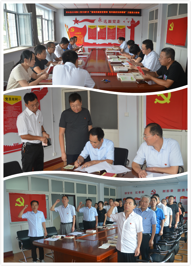 市水投公司第二黨支部8月28日—9月7日開展了“敲響拒腐防變警鐘 筑牢廉潔自律堤壩”主題黨日活動。活動共分三個階段進行,第一階段開展“+”活動,8月28日上午,全體黨員干部來到市廉政警示教育基地參觀學習,接受黨風廉政和反腐倡廉教育,重溫了入黨誓詞,旨在進一步推進全面從嚴治黨落細落實,不斷強化黨紀教育,豐富主題黨日活動內容。第二階段9月3日召開支部委員會會議,討論研究支部8月份工作總結和9月份工作計劃,同時研究9月份支部主題黨日活動方案。