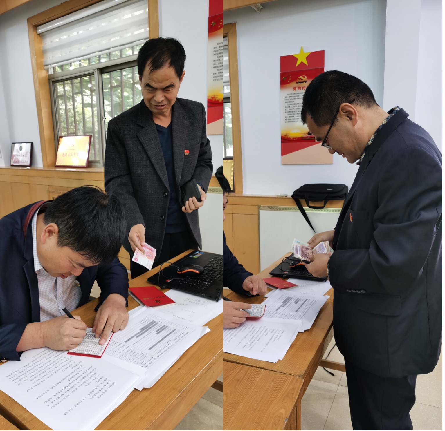 首先,在書記楊素平同志帶領(lǐng)下,全體黨員面向黨旗重溫了入黨誓詞。使我們更加堅定了為共產(chǎn)主義事業(yè)奮斗終身的理想信念。并集中繳納了本月黨費,履行了黨員義務(wù)。
