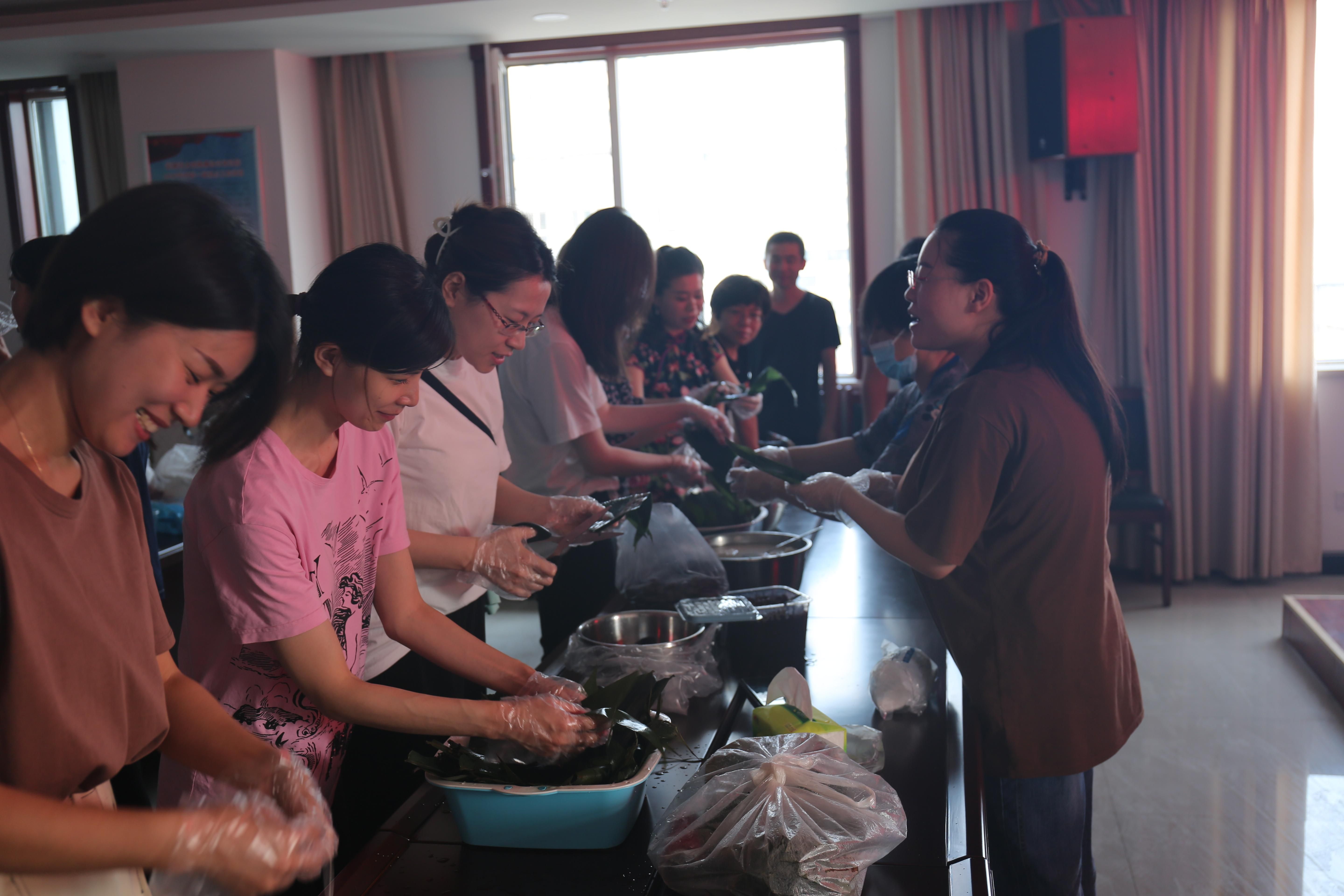6月11日上午9時(shí),公司參加活動(dòng)的員工早早齊聚現(xiàn)場(chǎng),開始準(zhǔn)備?;顒?dòng)現(xiàn)場(chǎng)準(zhǔn)備了糯米、粽葉、紅棗等材料,全體員工圍在一起包粽子。雖然大多數(shù)員工是第一次嘗試,但在包粽“高手”的教導(dǎo)下,員工合作起來包粽子、蒸晉糕,你理粽葉、我包粽,你洗紅棗,我填米,大家積極踴躍,一片歡聲笑語,不一會(huì)百十粽子和晉糕就已成型。包出粽子的形狀不一,有三角的有四角的,晉糕也是造型各異。伴隨著水蒸氣的沸騰,熱騰騰出鍋的粽子、晉糕,香氣襲人,大家品嘗著自己的勞動(dòng)成果,內(nèi)心充滿了喜悅。