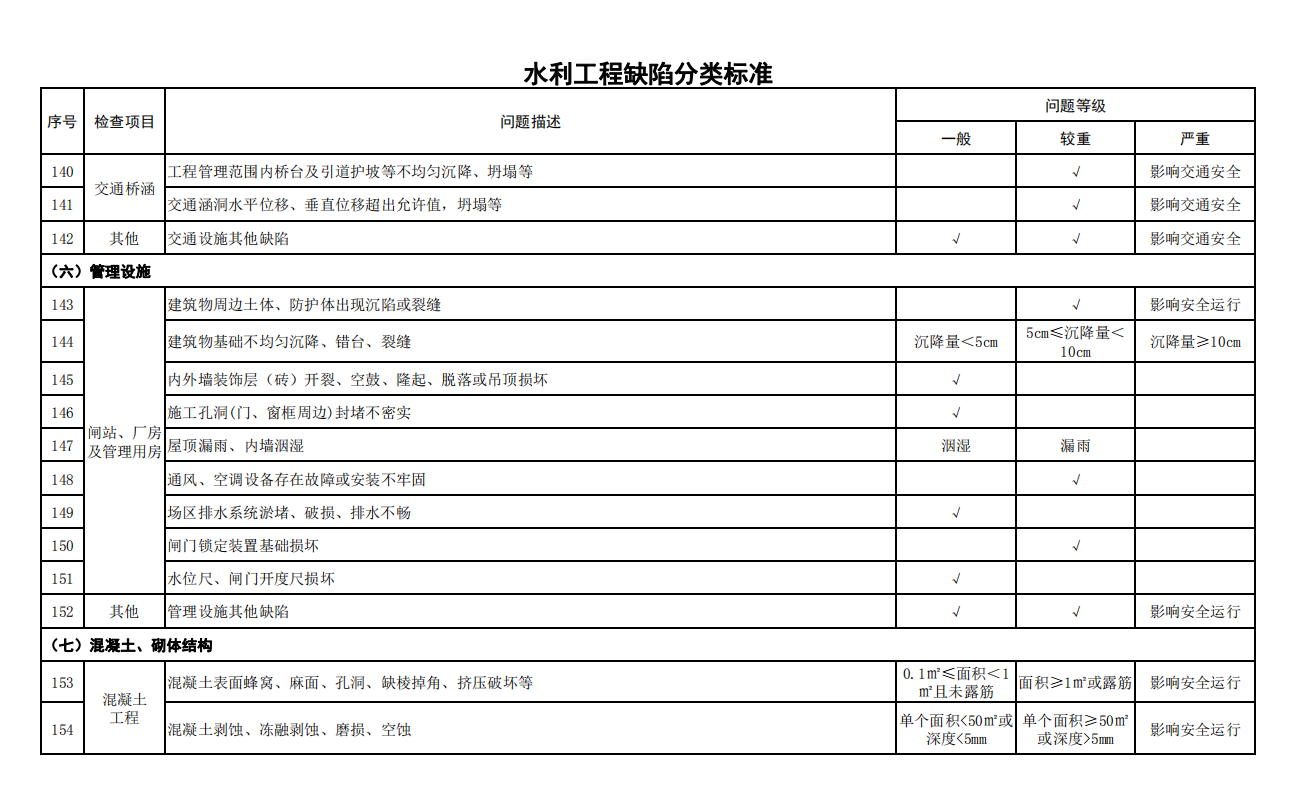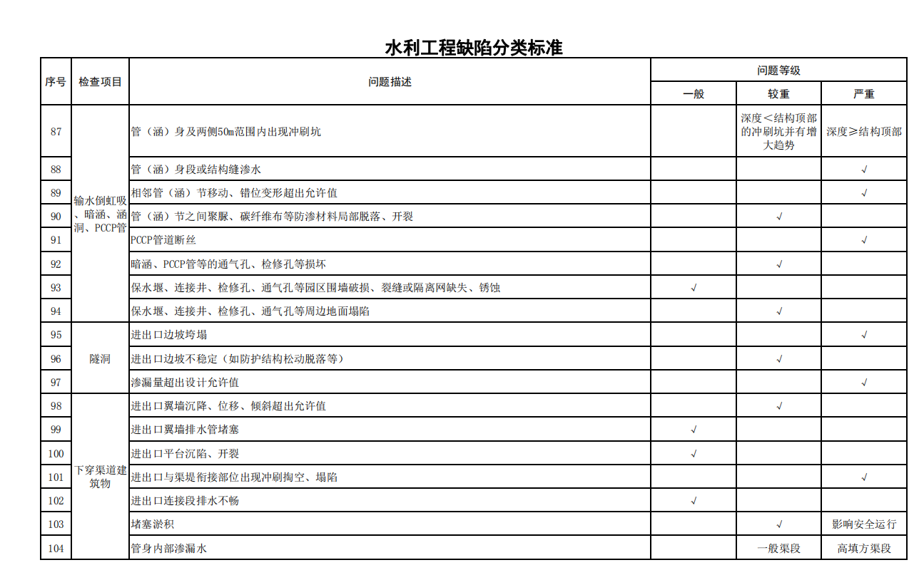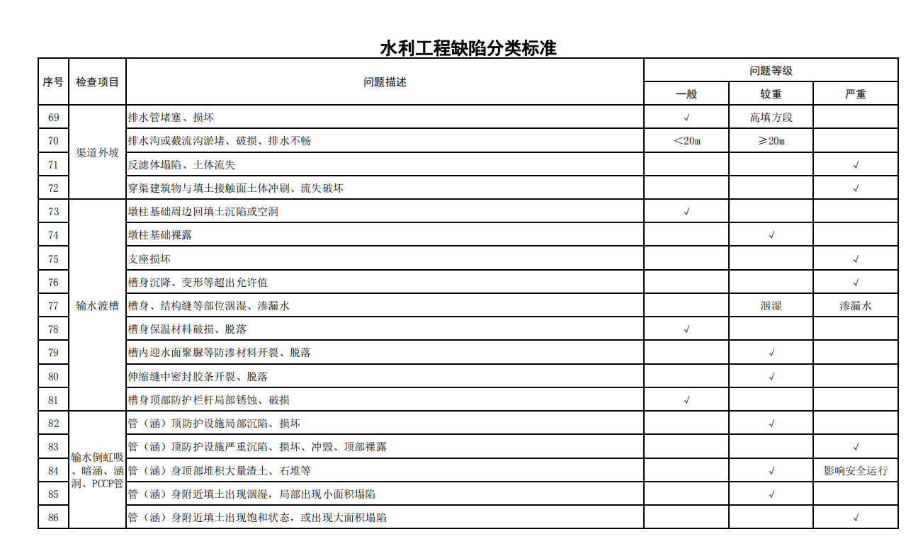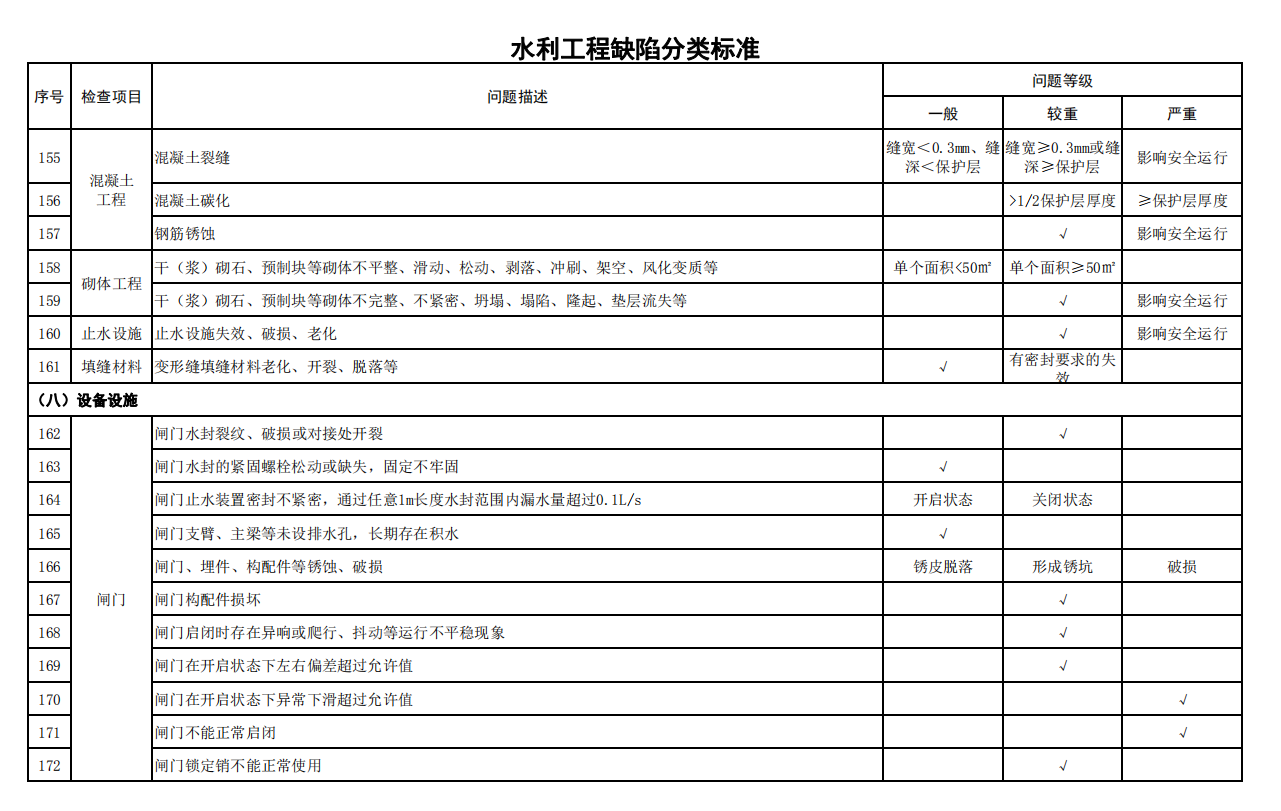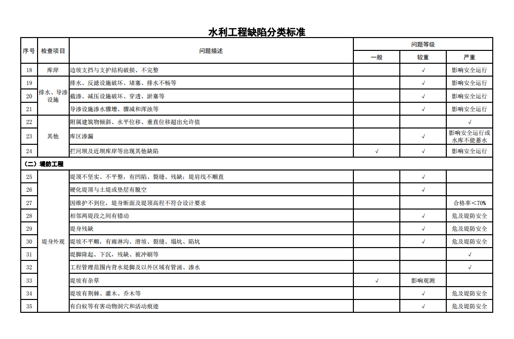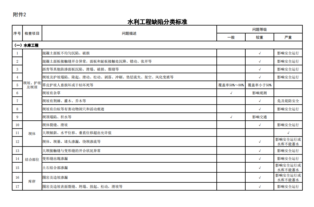 2.水利工程缺陷分類標(biāo)準(zhǔn)