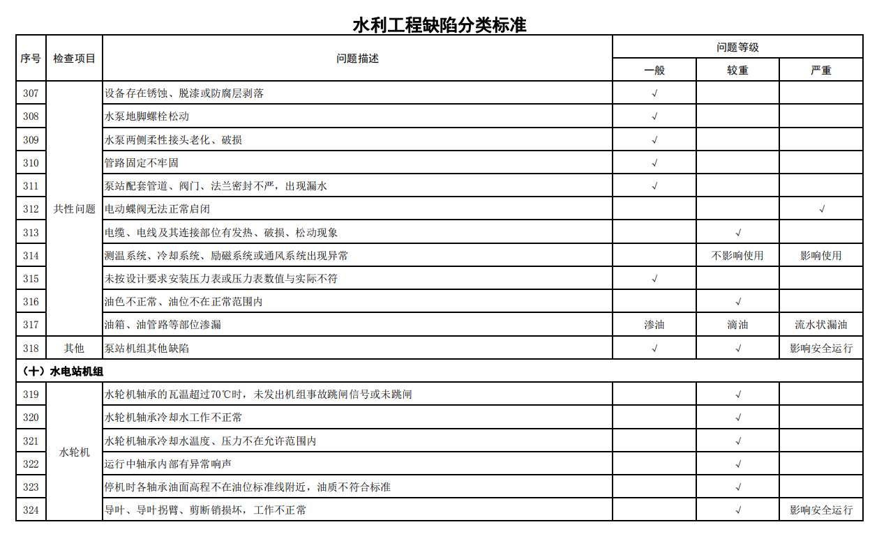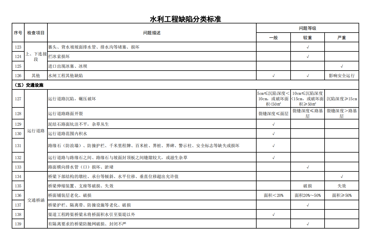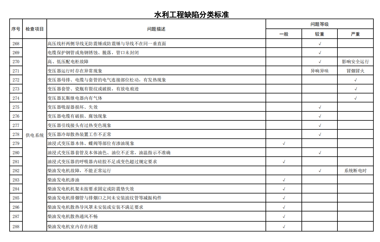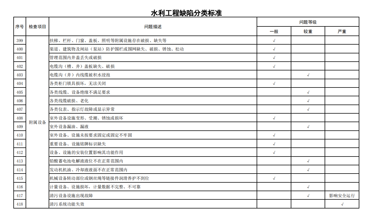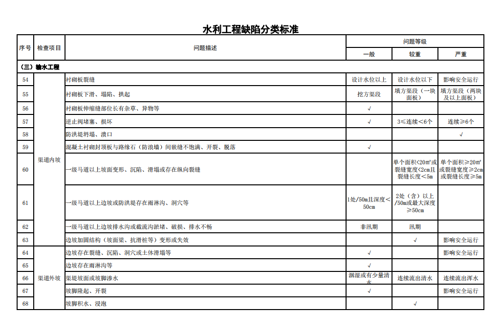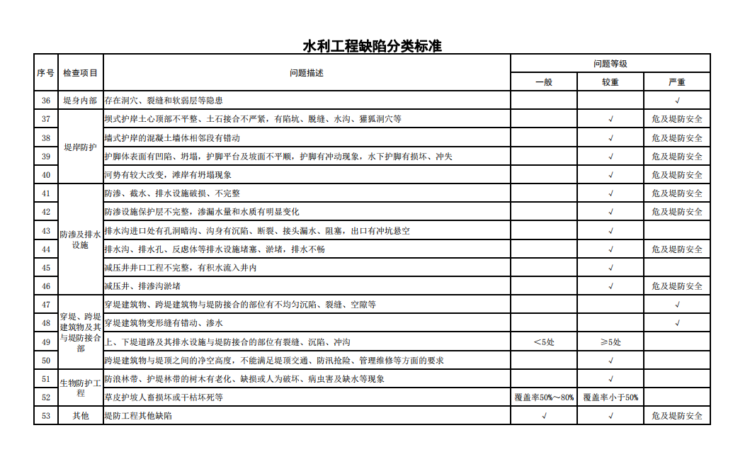 2.水利工程缺陷分類標(biāo)準(zhǔn)