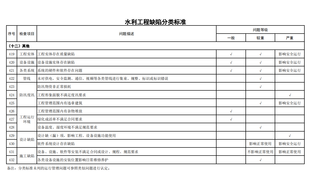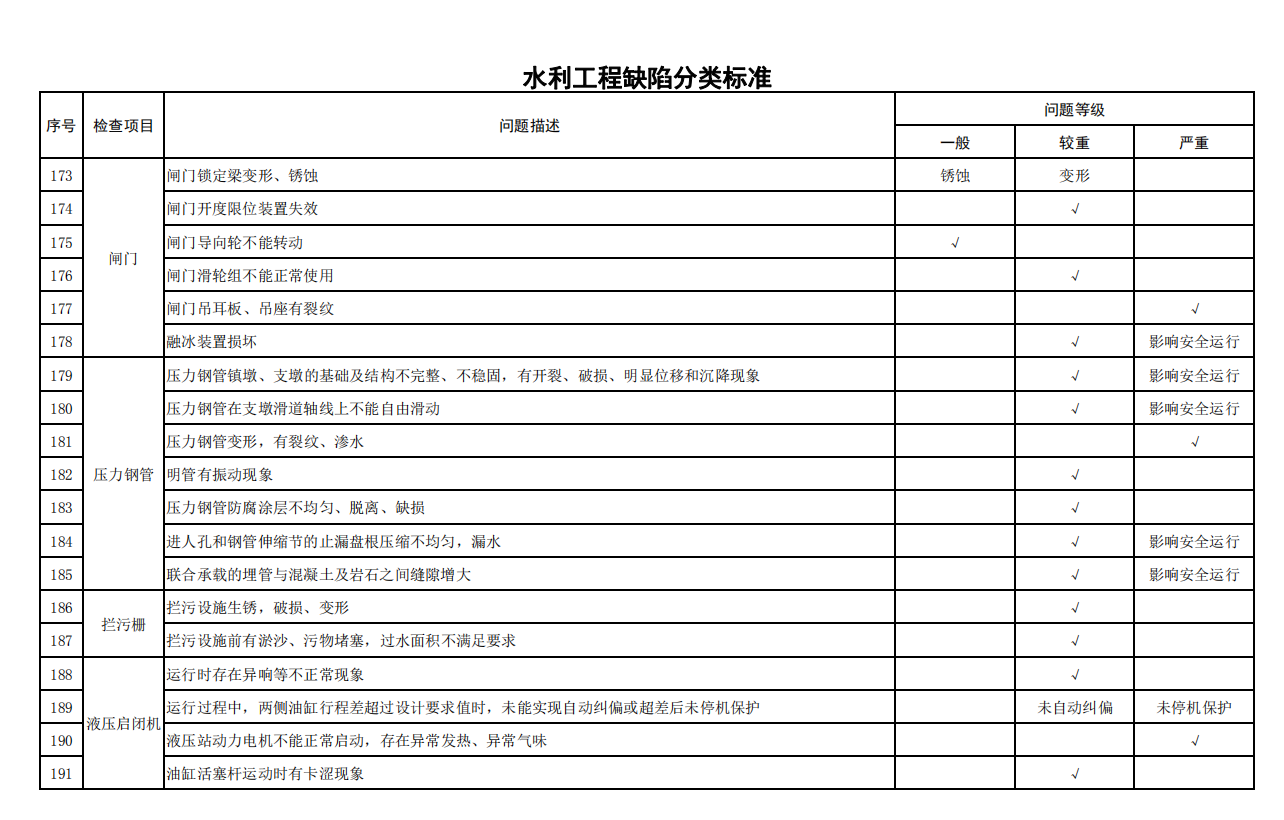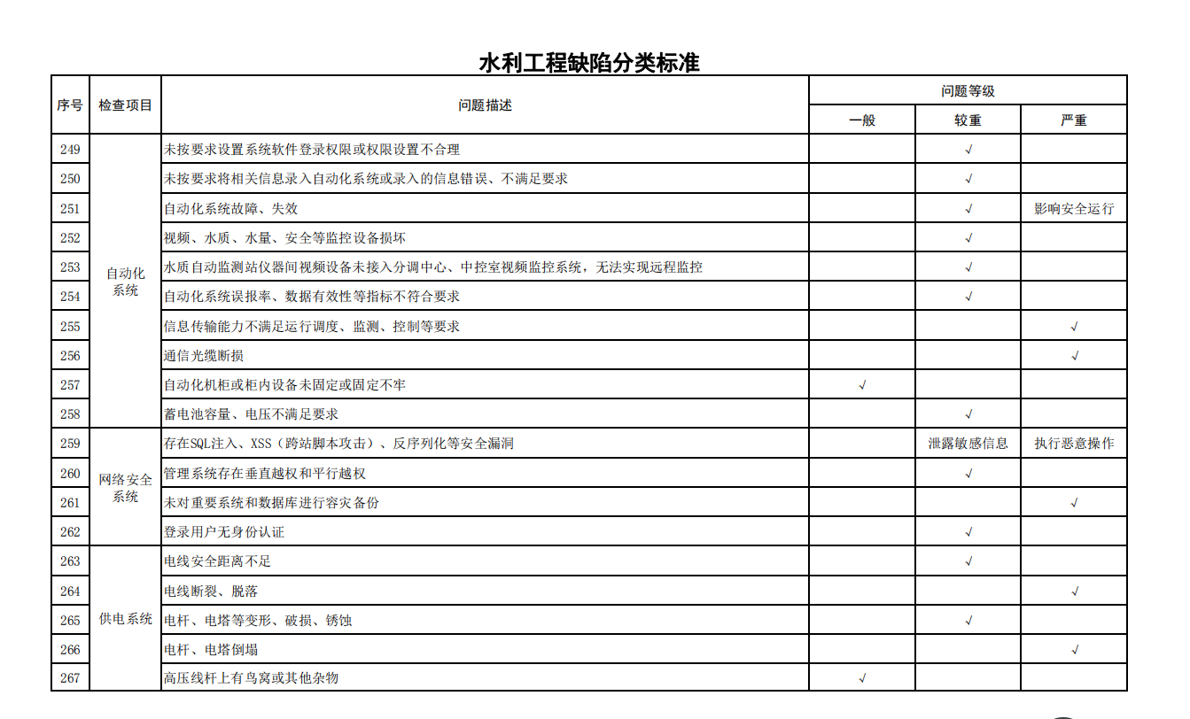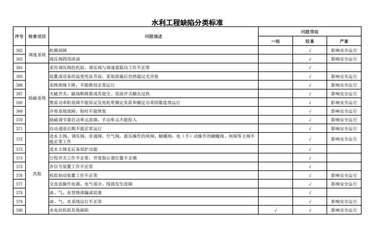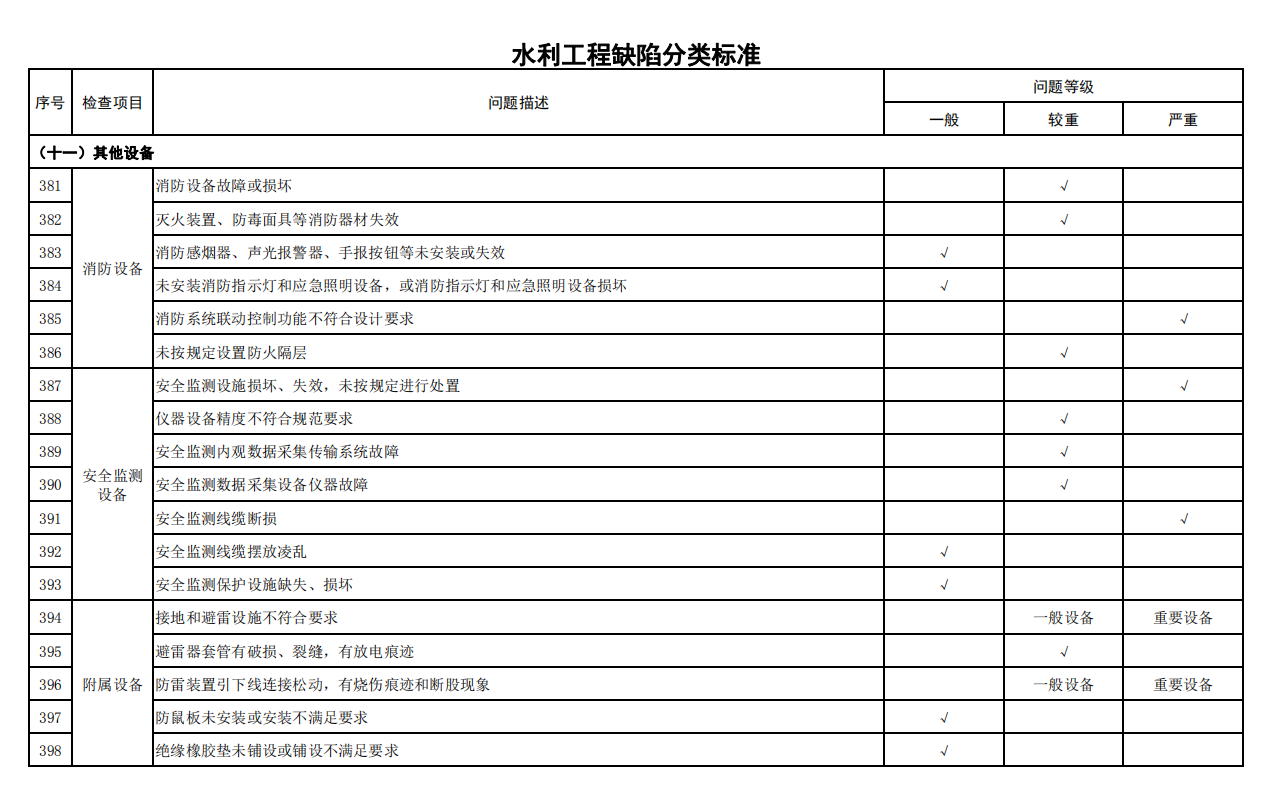 2.水利工程缺陷分類標(biāo)準(zhǔn)
