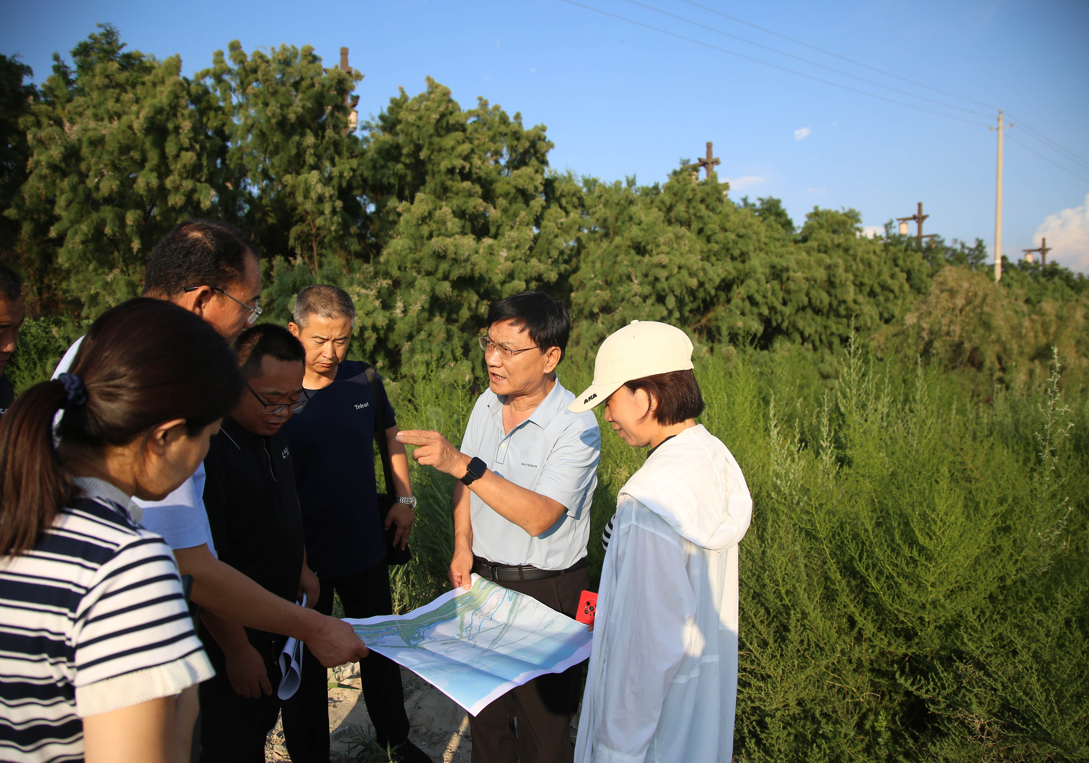 8月3日下午,為保證施工安全和工程質(zhì)量,加快施工進(jìn)度,進(jìn)一步優(yōu)化設(shè)計方案,公司董事長兼總經(jīng)理崔作銘帶隊赴鹽池跨湖大道以西實(shí)地踏勘,現(xiàn)場研討施工方案。市水工局、鹽池項目相關(guān)負(fù)責(zé)人陪同檢查。