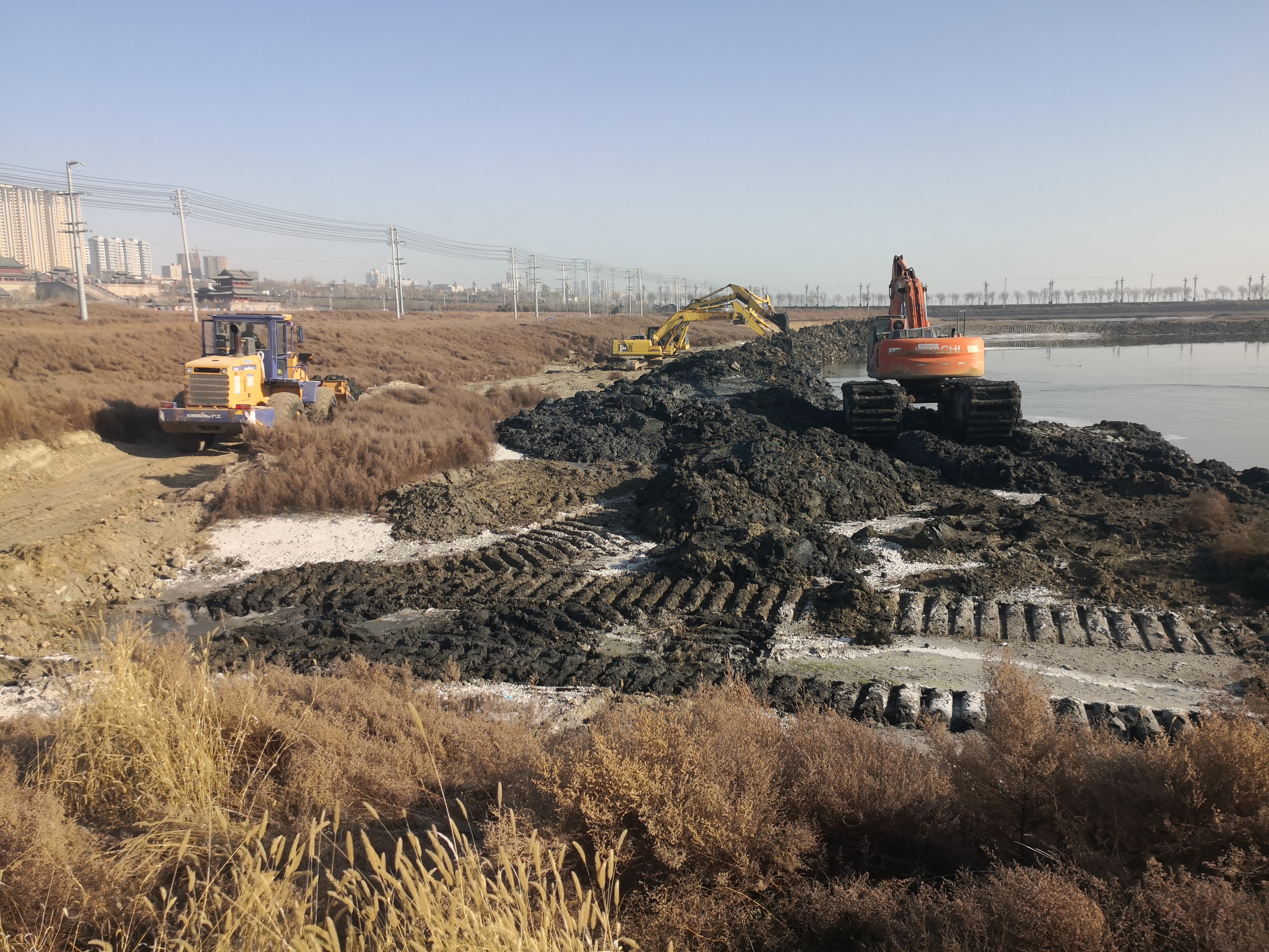 寒潮來襲,氣溫驟降,在當(dāng)前疫情防控取得階段性重要成效的情況下,我公司所承建的鹽湖堤埝除險加固及生態(tài)修復(fù)工程(二期)迅速復(fù)工復(fù)產(chǎn),呈現(xiàn)出提速推進(jìn)的態(tài)勢。