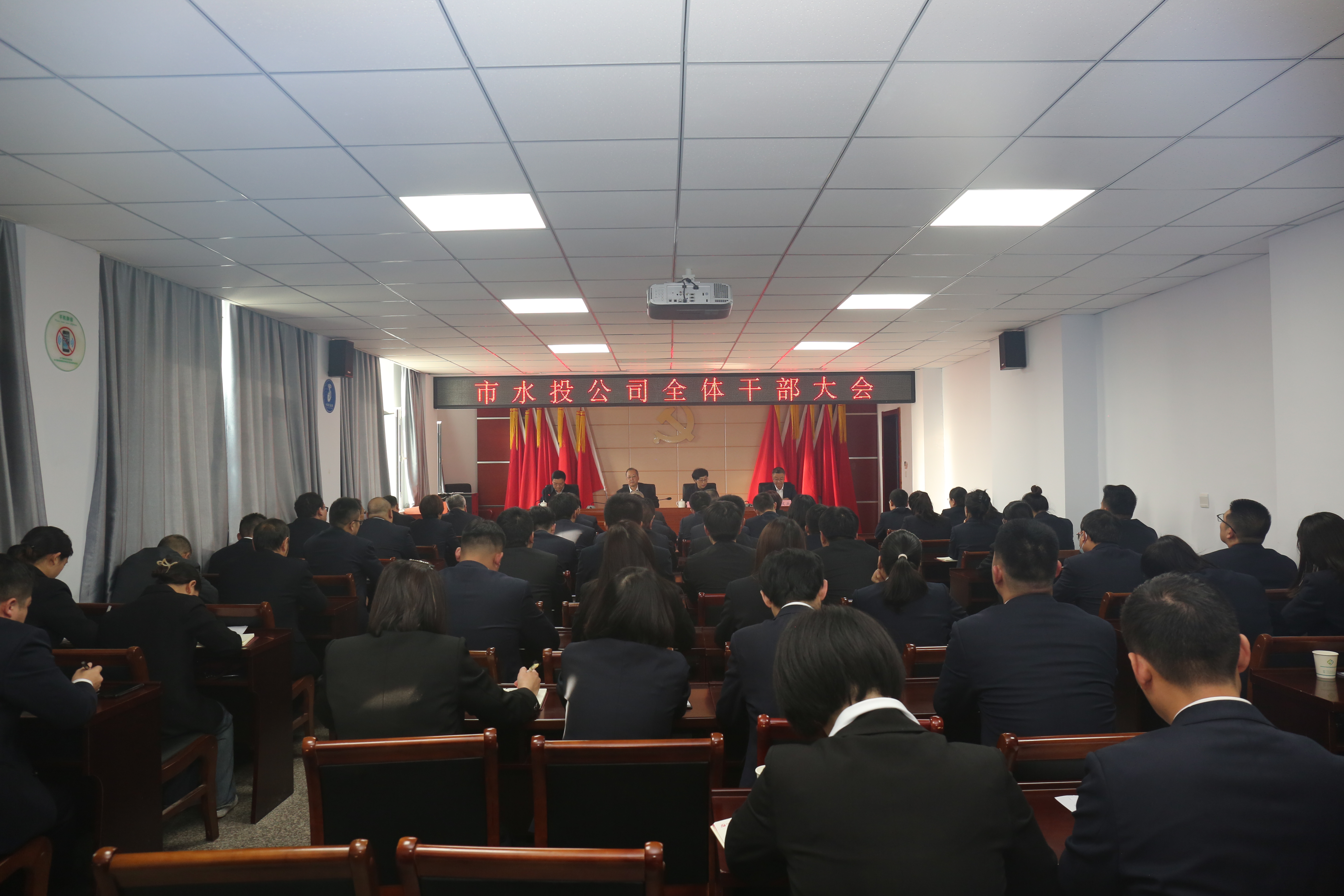 10月27日下午,市水投公司召開全體干部大會(huì)。市委常委、副市長董旭光,市委組織部副部長、市委老干部局局長丁文玲出席會(huì)議并講話。公司黨委書記、董事長崔作銘主持會(huì)議。公司黨委班子成員、全體干部職工及子公司班子成員參加會(huì)議。