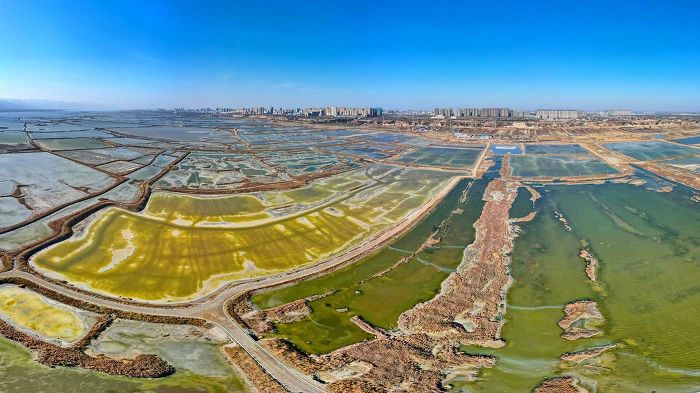 ▲鹽湖冬日獨特的地質風貌,色彩斑斕生態(tài)宜人