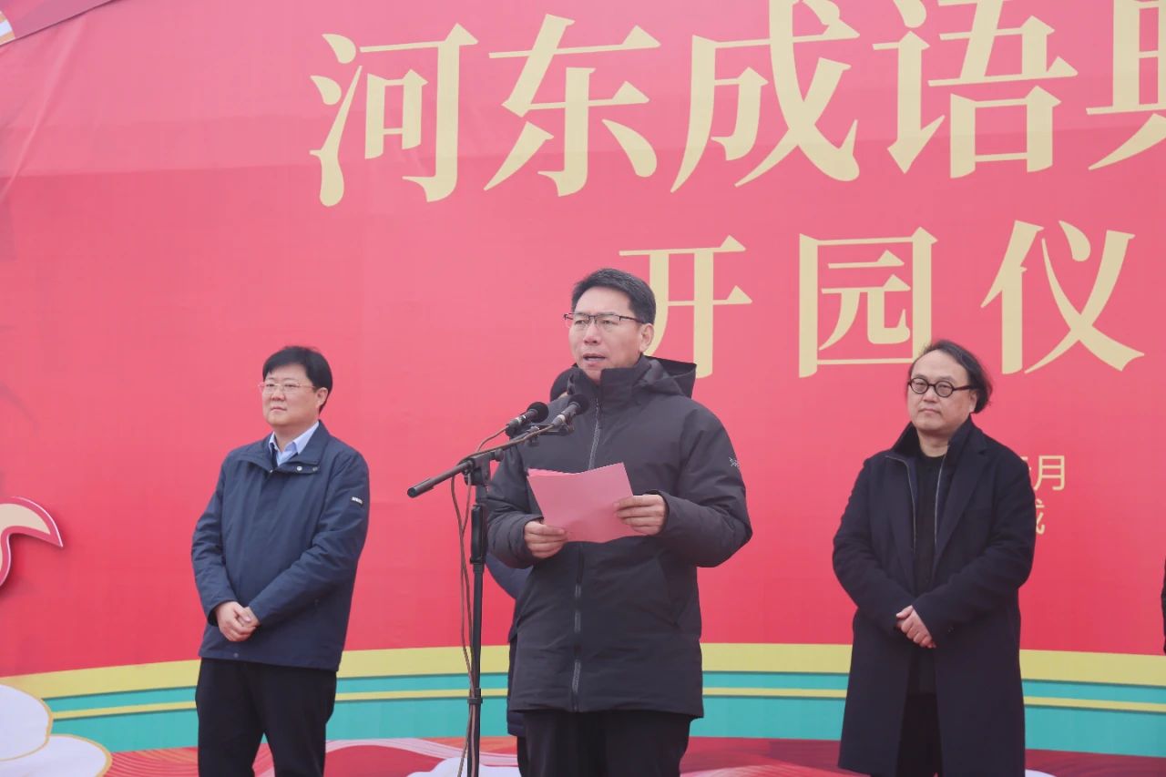 啟動儀式由運城市委宣傳部長王志峰主持,運城市文化和旅游局黨組書記、局長陳小光同志介紹了河東成語典故園策劃創(chuàng)意及實體達效情況;市水務投資建設開發(fā)有限公司黨委書記、董事長兼市鹽湖生態(tài)保護開發(fā)中心副主任崔作銘匯報了河東成語典故園建設概況;中國美術(shù)學院院長、黨委副書記高世名同志做了致辭;最后中共運城市委副書記、市人民政府市長儲祥好同志宣布河東成語典故園開園,臺上領導和嘉賓共同推動啟動桿,百人齊聚,彩煙如虹當空,裊裊綻放,共同見證了這一激動人心的重要時刻。
