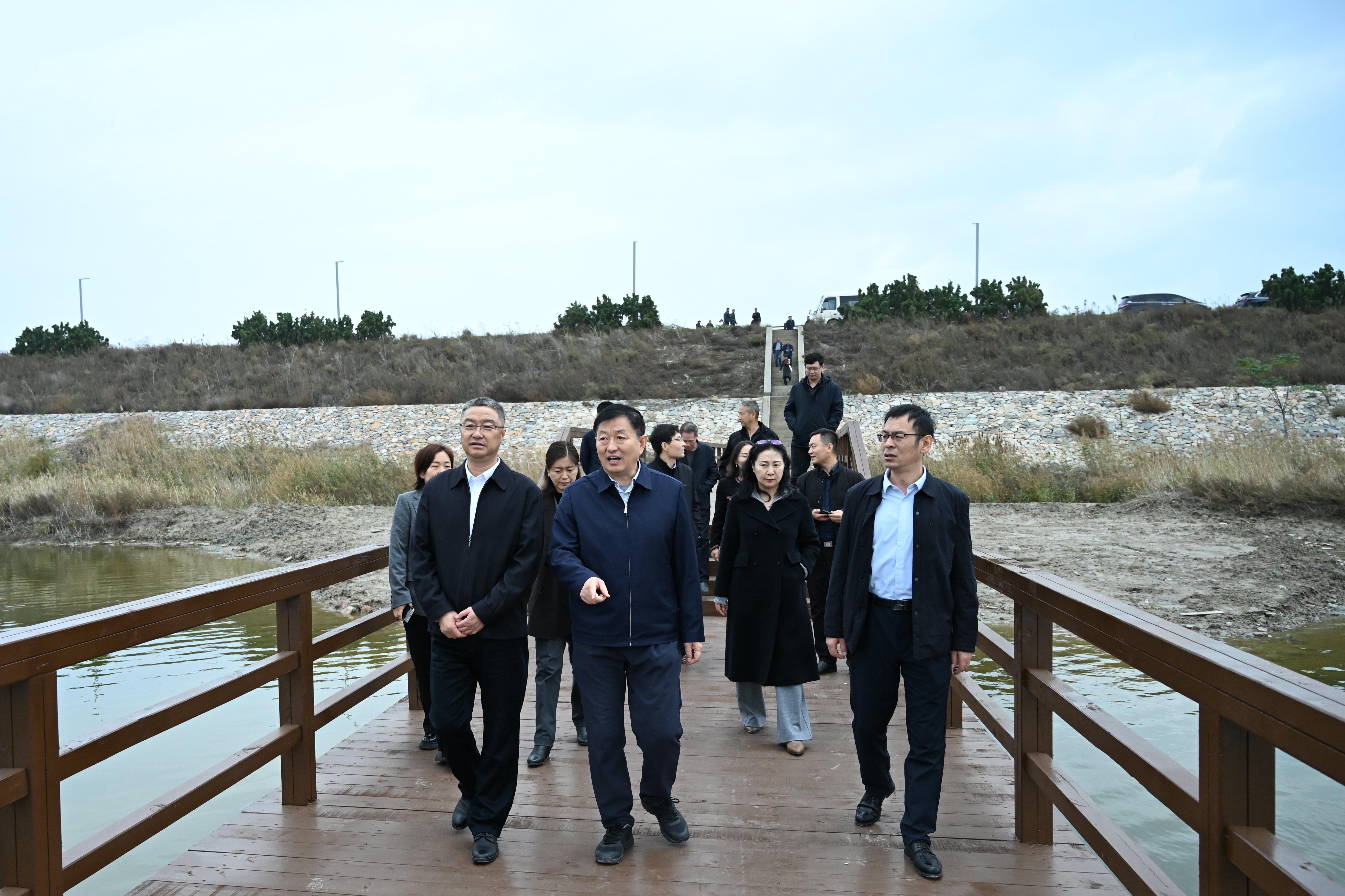 潘志孝一行實地考察鹽湖生態(tài)濕地公園、鹽湖木棧道項目建設(shè)情況,聽取相關(guān)匯報,詳細(xì)了解工程進(jìn)展。