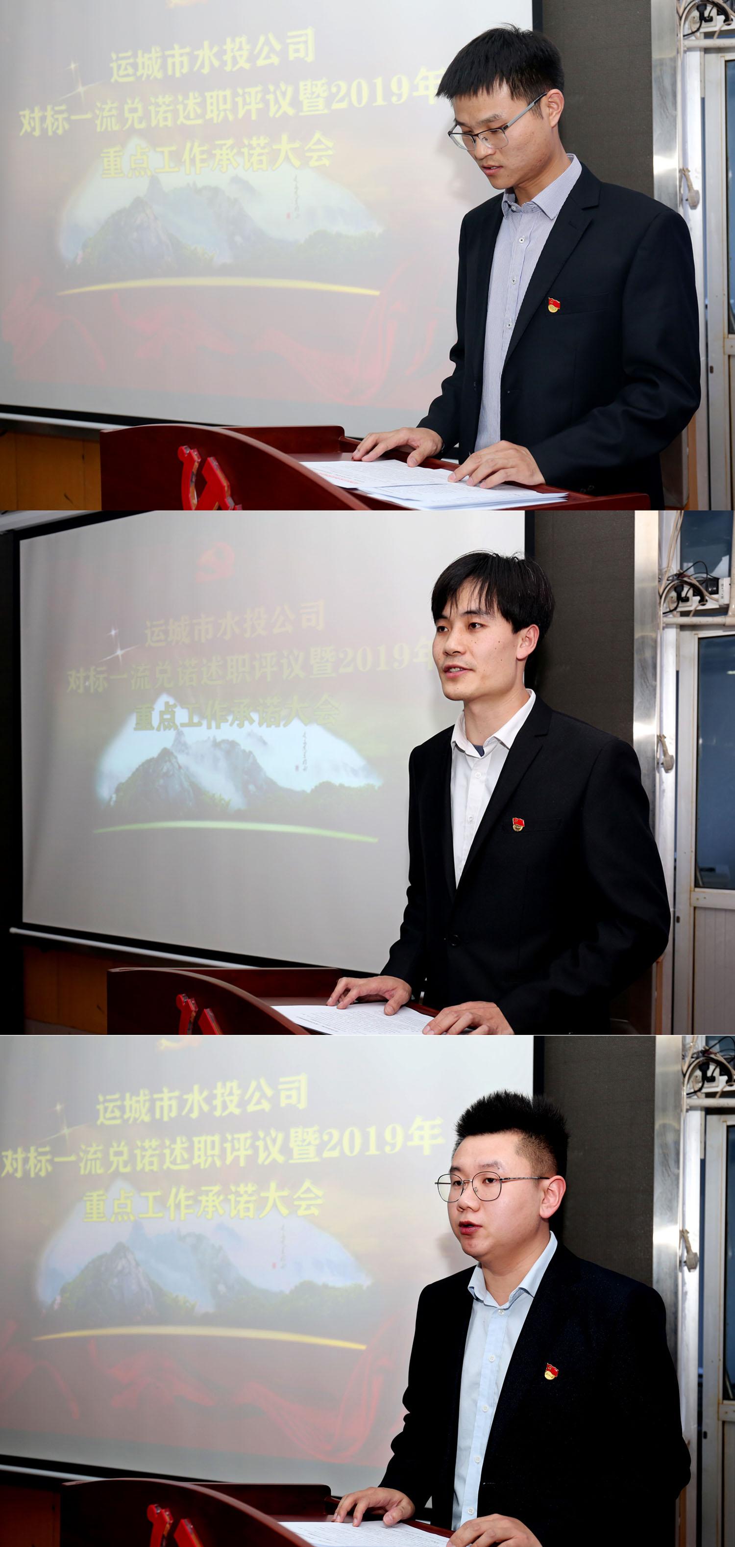 會上,領(lǐng)導班子副職和黨辦、綜合辦、財務部、工程部主要負責人圍繞2018年年初承諾事項兌諾述職,就2019年重點工作向公司黨委、董事會和全體員工進行公開承諾。公司班子成員進行了點評,參會人員進行了述職測評。
