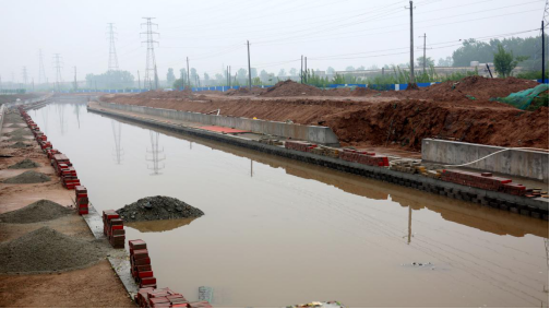 4月8日晚上,因長時間降雨,空港南區(qū)街道排水不暢,大量雨水涌入正在施工中的姚暹渠(空港段)渠道,導(dǎo)致該段建設(shè)工程遭到大面積浸泡。4月9日清晨,接到項目部負(fù)責(zé)人報告后,公司董事長崔作銘率領(lǐng)公司相關(guān)人員冒雨迅即趕赴施工現(xiàn)場,會同項目公司、項目部、設(shè)計單位和監(jiān)理單位,沿渠逐段察看渠底雨水灌注浸泡情況,共商以下六個破解辦法: