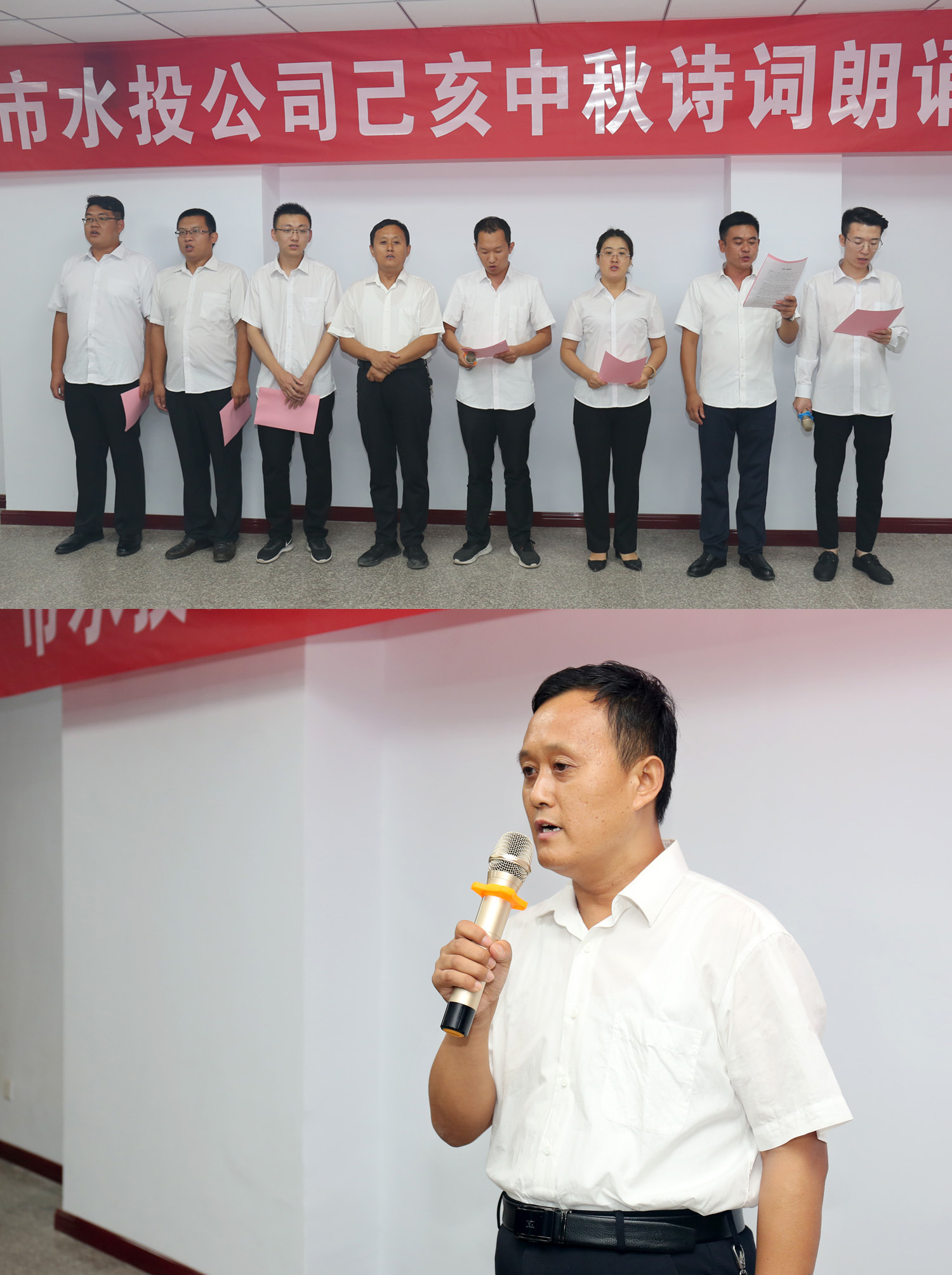 朗誦會開始前,公司黨委書記、董事長兼總經(jīng)理崔作銘致辭,向為水投建設發(fā)展辛勤耕耘默默奉獻的全體員工致以誠摯的問候和衷心的感謝,同時預祝各位員工中秋佳節(jié)快樂家庭幸福、身體健康。他希望全體員工“守初心、擔使命,找差距、抓落實”,以“長風破浪會有時,直掛云帆濟滄海”的豪情,以“千淘萬漉雖辛苦,吹盡狂沙始到金”的毅力,以抓鐵留痕,踏石留印的執(zhí)行精神,再寫傳奇,再譜新篇!