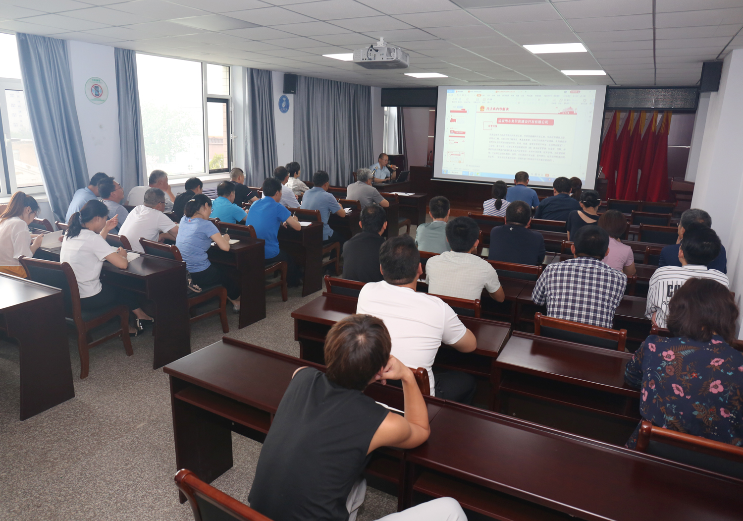 王銀良律師將《民法典》分成兩個(gè)部分解讀,第一部分為綠色原則解讀,第二部分為生活里的民法典。王銀良律師用通俗的語(yǔ)言和生動(dòng)的例子,為大家深刻進(jìn)行了民法典法律解讀,授課內(nèi)容緊貼企業(yè)生產(chǎn)經(jīng)營(yíng),從綠色原則解讀了在水系規(guī)劃建設(shè)及生態(tài)環(huán)境保護(hù)的相關(guān)舉措上的法律制度和政策導(dǎo)向;授課內(nèi)容緊貼生活,從《婚姻法》、《繼承法》、到《物權(quán)法》,關(guān)系到每一個(gè)人生活的方方面面,使參會(huì)人員學(xué)習(xí)到了新的法律知識(shí),理解和把握了《民法典》對(duì)日常生活的重要意義。