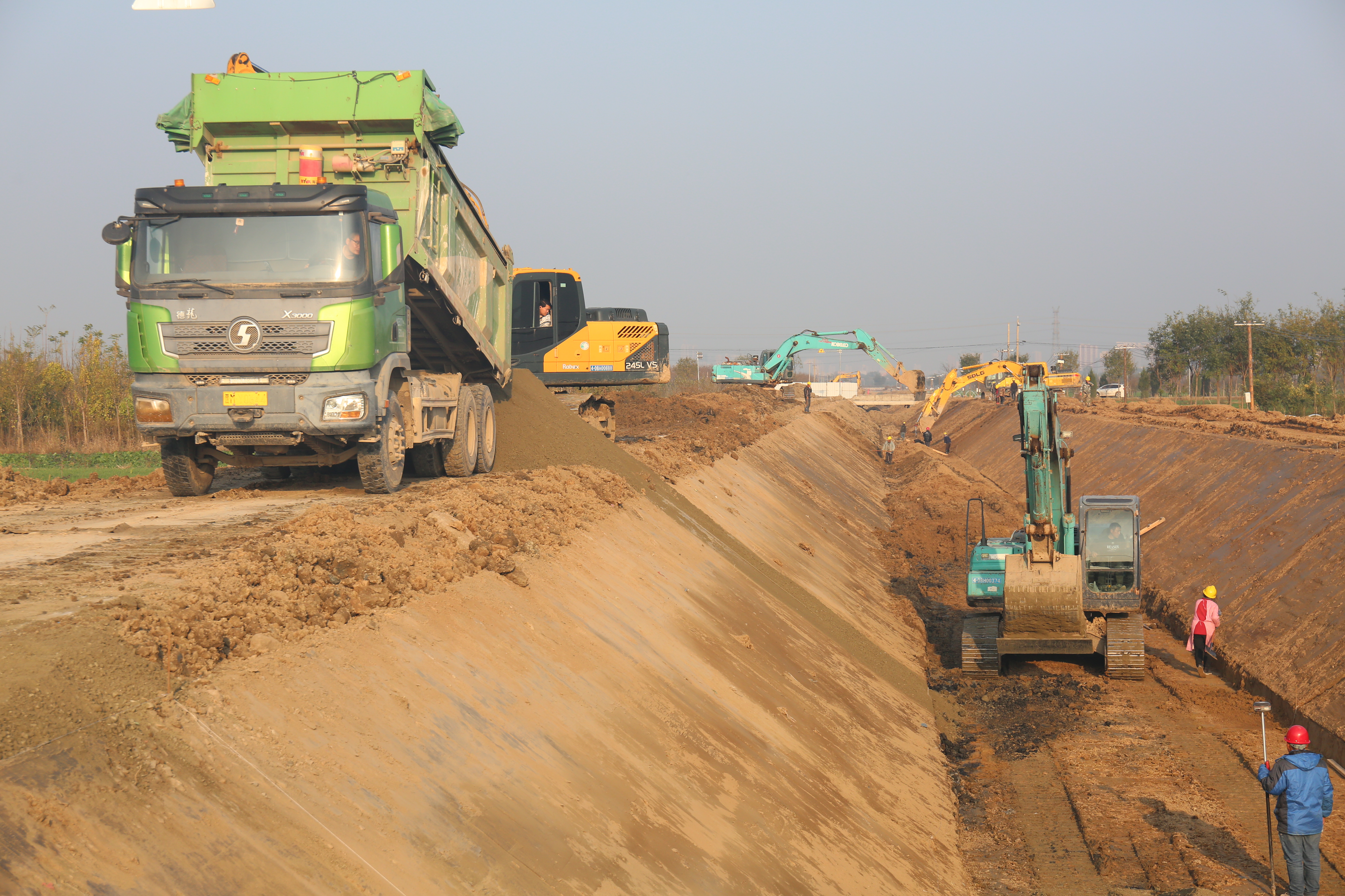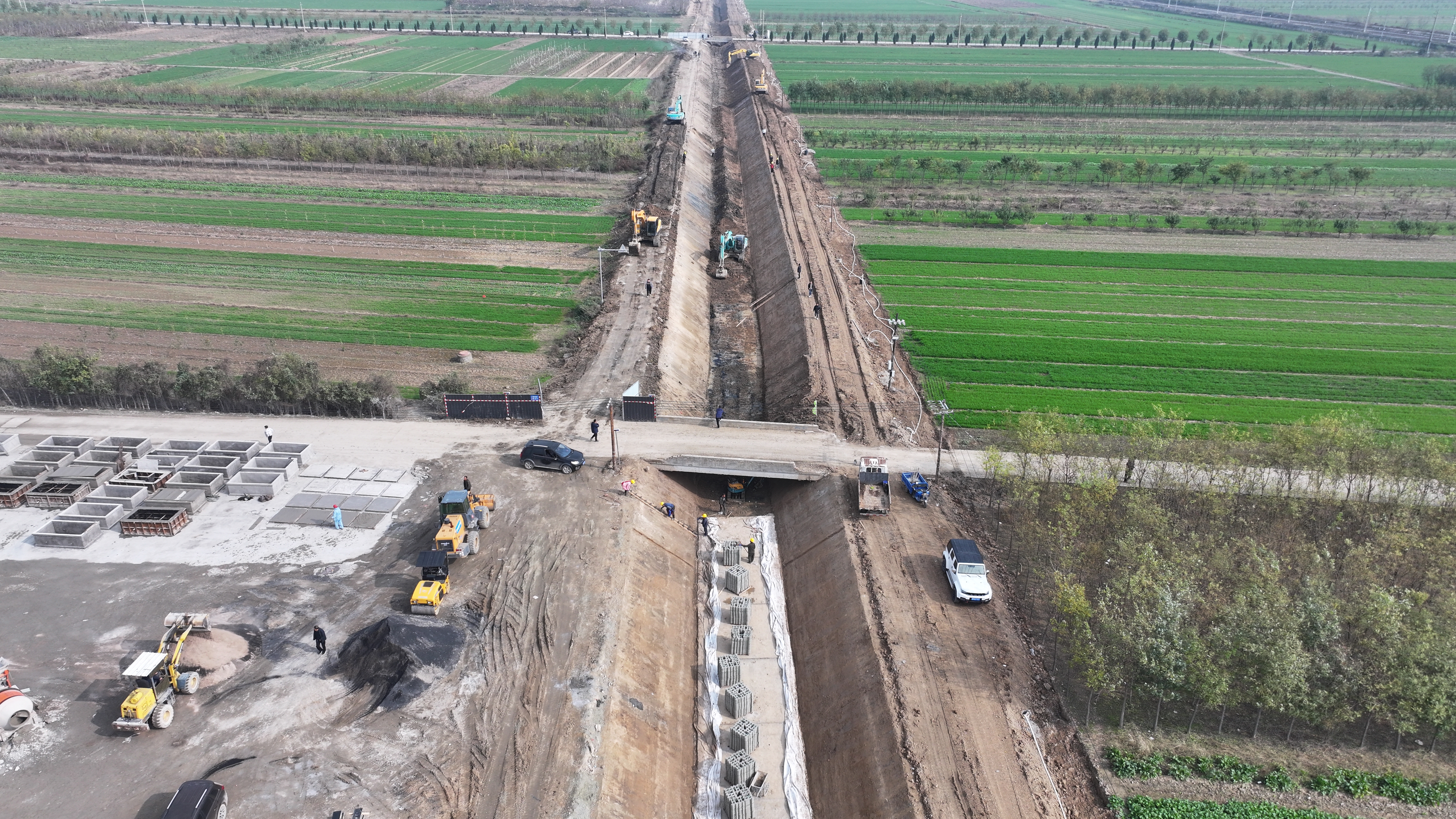 在項(xiàng)目施工現(xiàn)場(chǎng),挖掘機(jī)、裝載機(jī)、振動(dòng)碾、壓路機(jī)等多臺(tái)大型機(jī)械設(shè)備正全力運(yùn)轉(zhuǎn),二十四小時(shí)作業(yè)不停工;十余名管理人員吃住在工地,隨叫隨到,發(fā)現(xiàn)問題及時(shí)解決問題,二十余名施工人員一身土一身泥,不叫苦不叫累,連續(xù)戰(zhàn)斗在工地;多個(gè)工作面同時(shí)展開施工,專人專崗,落實(shí)主體責(zé)任,各項(xiàng)工作井然有序,工程進(jìn)度按照既定的工作目標(biāo)穩(wěn)步進(jìn)展。截止目前,已完成井點(diǎn)降水打井133眼,降水臺(tái)班2300個(gè);清基28519m³、土方開挖9000m³、土方回填約6000m³、砂礫石墊層200m;渠道底板混凝土澆筑200m。